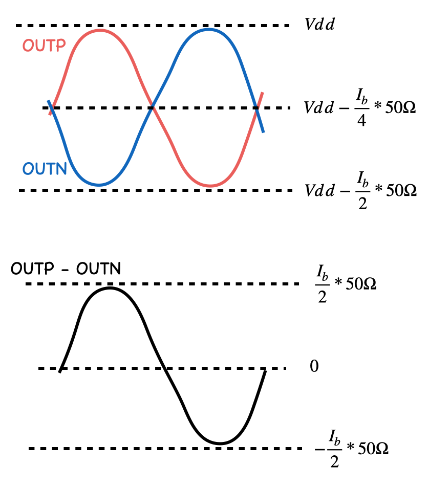- 出力振幅は$V_{OD}=I_b*50\Omega$。
